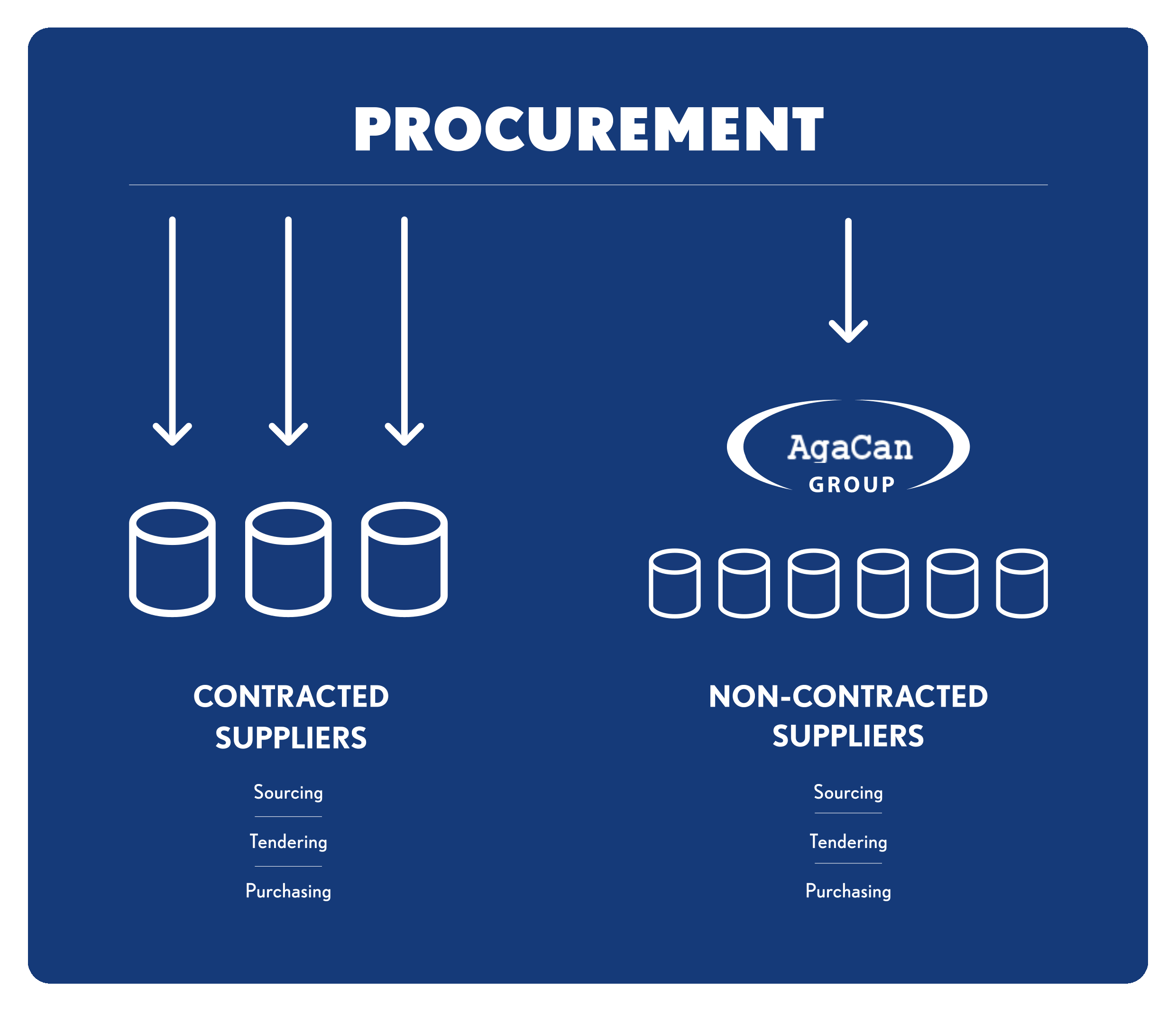 AgaCan Group is the total supplier with an unlimited product range. We are an independent supplier without a fixed range. You reduce your supplier base from thousands of billing suppliers to one total supplier.